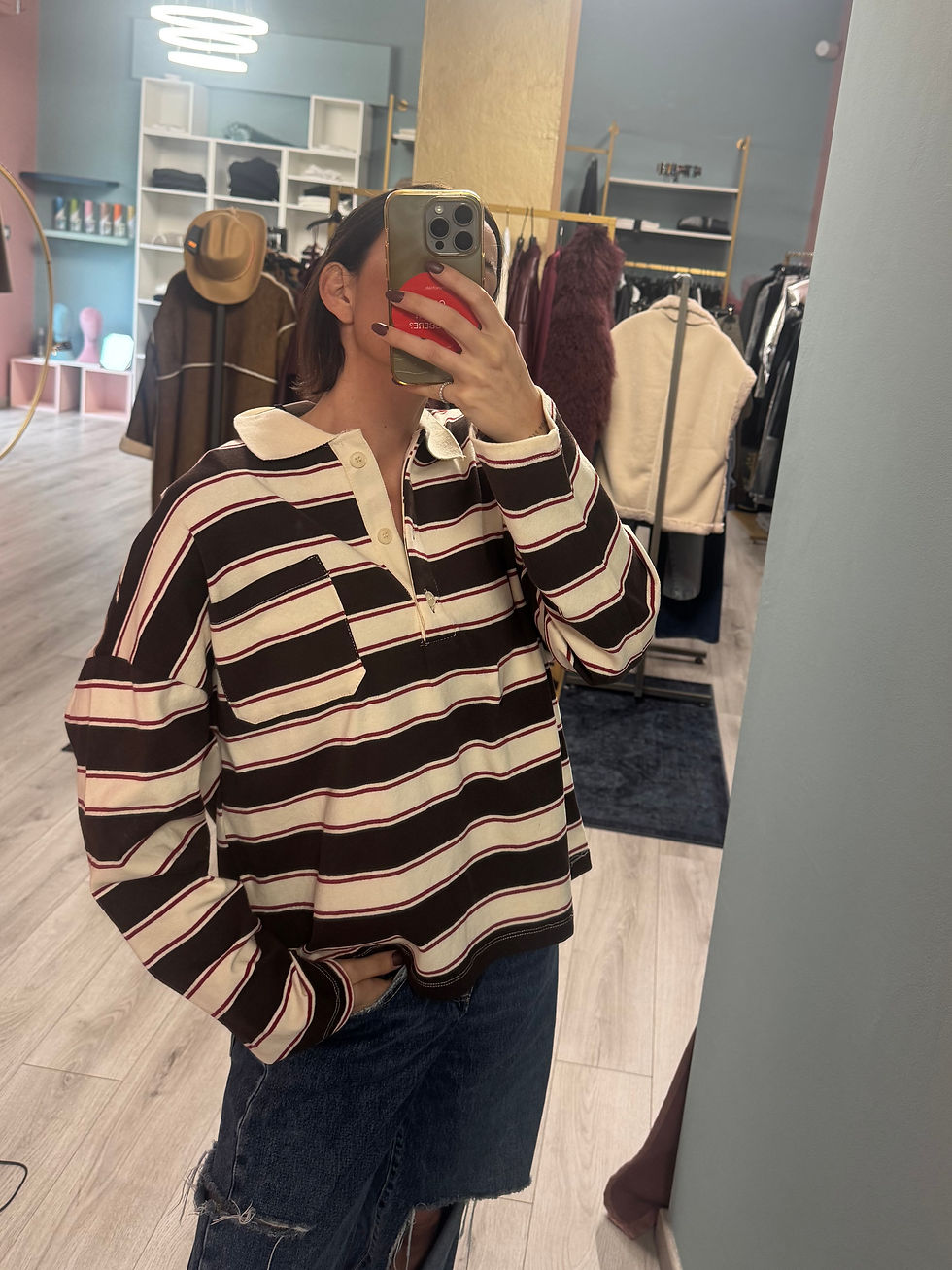 Polo righe LUMINA marrone / bordeaux /panna